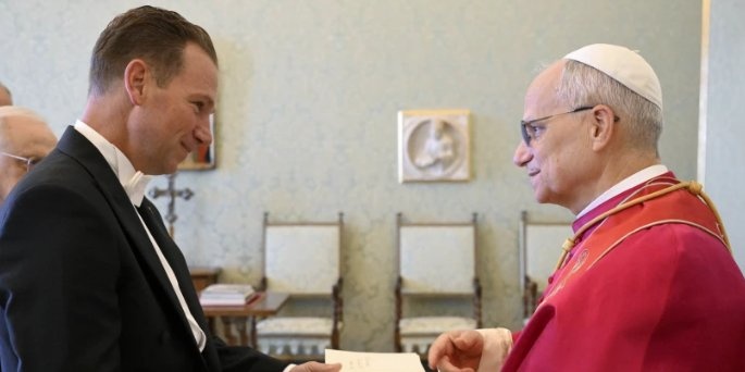 | ![]() US-Botschafter am Heiligen Stuhl, Burch: „Die moralische Autorität der Kirche ist unübertroffen“vor 2 Stunden in Weltkirche, keine Lesermeinung Praktizierender Katholik Brian Burch: „Es gibt einen Grund, warum die ganze Welt gespannt verfolgt, was passiert, wenn wir einen Papst wählen, nicht wahr?“ Vatikan (kath.net) „Nun, es gibt da diesen Witz, dass dies die einzige Stelle in der US-Regierung ist, bei der man für Messbesuche bezahlt wird.“ Diesen Scherz zitiert der US-Botschafter am Heiligen Stuhl, Brian Burch, im Interview mit Colm Flynn für EWTN. Es sei „etwas ganz Besonderes, eine Position zu bekleiden, die tiefe spirituelle Erfahrungen mit der diplomatischen Rolle als Botschafter verbindet. Ich persönlich hätte nie gedacht, dass ich einmal in dieser Position landen würde. … Die Frage ist für uns alle: Warum hat Gott Sie hierher geführt? Welche Gaben hat er Ihnen geschenkt, die Sie nun einsetzen und leben sollen, und was bedeutet das für mich in den kommenden Jahren? Mein Leben hat sich im letzten Jahr dramatisch verändert, und nun bin ich in dieser Rolle. Ich sehe es als eine Reise, auf der ich einfach mitfahre. Gott sitzt am Steuer, und ich versuche nur, mitzuhalten. Burch ist selbst praktizierender Katholik, verheiratet und Vater von neun Kindern. Der Botschafter erläuterte, dass es seiner Einschätzung nach „in den grundlegenden Fragen, insbesondere beim Schutz des Lebens, der Bedeutung der Familie, dem Recht der Eltern, die Erziehung ihrer Kinder zu bestimmen, und der Notwendigkeit, Frieden und Gerechtigkeit in der Welt zu fördern …, keine Meinungsverschiedenheiten zwischen dem Vatikan und den Vereinigten Staaten“ gebe. Natürlich gebe es aber „Bereiche der praktischen Abwägung, in denen wir uns zwar im Ziel einig sind, aber nicht in den Mitteln“. Man könne „mit Fug und Recht behaupten, dass der Vatikan, der Heilige Stuhl, einen bedeutenden Einfluss in der Welt hat“ erläuterte Burch. „Denken wir nur daran: Der Heilige Vater spricht jeden Mittwoch in einer Audienz und jeden Sonntag beim Angelusgebet zu 1,6 Milliarden Menschen. Welche andere Institution besitzt eine solche Macht?“ Im vergangenen Jahr seien während des Heiligen Jahres rund 30 Millionen Pilgergekommen, „welcher andere Ort zieht so viele Menschen an? Dann ist da natürlich die Kirche. Es gibt Kardinäle, Bischöfe, Priester, Pfarreien. Überall auf der Welt engagieren sich Menschen im Dienst des Glaubens. Diese Reichweite der Kirche ist enorm.“ In den Vereinigten Staaten suchten Menschen „nach Antworten auf tiefere Fragen des menschlichen Lebens, nach dem, was uns glücklich macht. Ich denke, die Kirche hat natürlich Vorschläge für diese Antworten. Doch im Kontext der praktischen Realität der Außen- und Innenpolitik sehe ich eine echte Synthese zwischen der politischen Richtung, die sich entwickelt, und den Antworten, die die Kirche der Welt gibt – sei es die grundlegende Rolle der Familie, die Würde des Menschen, die Menschenrechte, die Meinungsfreiheit, die Religionsfreiheit oder der Wunsch der Menschen, ihren Glauben in allen Lebensbereichen zu leben. Ich glaube, die Menschen sehen die Kirche nicht nur als spirituelle Führerin, sondern auch als jemanden mit einer reichen Tradition an Antworten.“ Dass der US-amerikanische Papst Leo XIV. derzeit noch nicht konkret eine USA-Reise plant, dazu erklärt Burch, dass es dazu viele Gründe zu bedenken gebe, u.a. die Logistik. Aber auch „ die Tatsache“, dass Leo XIV. „in die USA zurückkehren würde. Es wird zweifellos eine seiner wichtigsten Reisen als Papst sein. Ich denke, es muss auch bedacht werden, ob es so aussehen könnte, als versuche er, die Zwischenwahlen und die damit verbundene Politik zu beeinflussen. Der Vatikan trifft seine eigenen Entscheidungen, und ich denke, wir wissen, dass er kommen möchte. Wir haben darüber gesprochen, und ich denke, zum richtigen Zeitpunkt wird er kommen.“ Gefragt nach den Abschiebungen aus den USA erläuterte Burch, dass die Ereignisse in Minnesota „entsetzlich“ gewesen seien. Er gehe davon aus, dass „die Einwanderungsfrage wird wohl immer wieder Gegenstand von Debatten und Gesprächen zwischen den USA und dem Heiligen Stuhl sein“ werde. „Was mich frustriert hat, waren die vielen Anschuldigungen, dies sei aus Fremdenfeindlichkeit oder Hass motiviert gewesen, obwohl ich weiß, dass diese Regierung, dieser Präsident, sich zutiefst für die Sicherheit unseres Landes einsetzt. Dafür wurde er gewählt. Ich denke, das haben die Menschen von ihm erwartet. Wir haben vier Jahre Chaos erlebt, in denen unsere Grenze überrannt wurde, Migranten ausgebeutet wurden, Menschen unkontrolliert in unser Land kamen und Kinder im ganzen Land verschwanden. Und der Präsident sagte: ‚Genug!‘ Er hatte den Mut, etwas sehr Schwieriges zu tun. Ich glaube, die Menschen unterschätzen manchmal, wie schwer es ist, das entstandene Chaos zu beseitigen. Als Katholiken glauben wir natürlich, dass alle Menschen Würde besitzen. Sie verdienen Respekt, und gerade bei der Rechtsanwendung, einschließlich Abschiebungen, müssen wir diese Würde achten.“ Er selbst, so Burch, habe mit „dafür gesorgt, dass Abgeschobene Zugang zu spiritueller Begleitung haben. Wir haben sichergestellt, dass sie die Sakramente empfangen können. Wir haben über den Ablauf gesprochen. Ich muss dem Vatikan erklären, wie unser Abschiebungsprozess abläuft. Das sind nie einfache Fragen, denn man versucht, eine schreckliche Situation aufzuarbeiten. Wir alle sollten die schrecklichen Ereignisse bedauern und uns bewusst machen, dass es so nicht ablaufen sollte. Die Strafverfolgungsbehörden sollten ihre Arbeit ungehindert und ohne Gewalt ausüben können, und unser Vorgehen sollte die Würde derjenigen respektieren, die gegen unser Gesetz verstoßen haben und in ihre Heimat zurückkehren müssen.“ Das Interview in voller Länge: Archivfoto: Botschafter Burch überreicht Papst Leo sein Beg