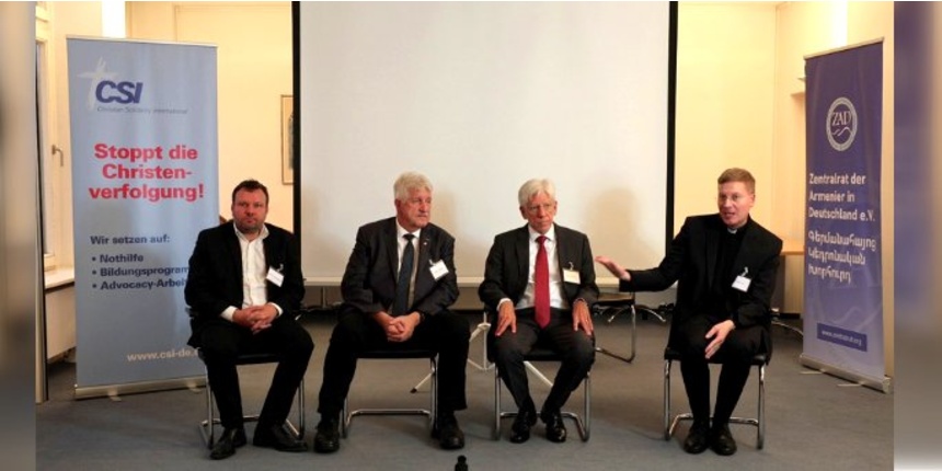 Christian Solidarity International (CSI) und der Zentralrat der Armenier in Deutschland stellen in Berlin die „Schweizer Friedensinitiative für Bergkarabach“ vor.