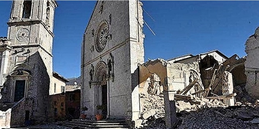 Die umbrische Stadt Norcia war am 30. Oktober 2016 von einem Erdbeben getroffen worden. Die Basilika San Benedetto, die an den hier geborenen Begründer des abendländischen Mönchtums, Benedikt von Nursia (um 480-547), erinnert, stürzte bis auf die Fassade ein. Der Überlieferung nach wurde das Gotteshaus über dem einstigen Geburtshaus von Benedikt von Nursia und seiner Zwillingsschwester, der heiligen Scholastika, errichtet.