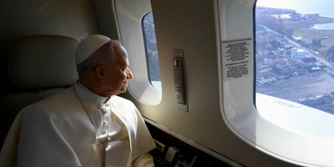 Foto: Papst Leo im Landeanflug auf Iznik (c) Vatican Media