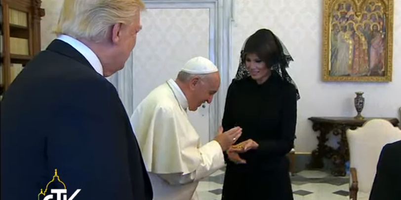 Die Welt/N24 hat in einem eigenen Beitrag darauf aufmerksam gemacht, dass Melania mit einem schwarzen Schleier beim Papst dabei war. Beim Besuch in Saudi-Arabien gab es Medienaufmerksamkeit, weil sie dort ohne Kopftuch und sonst üblicher stark verhüllender Kleidung aufgetreten war. Die First Lady erhielt beim Papst einen goldenen Rosenkranz zur Erinnerung geschenkt, den sie ihm in einer spontanen Geste hinhielt, worauf Franziskus den Rosenkranz segnete. Auch die Trump-Tochter Ivanka trug bei der Papstaudienz übrigens einen schwarzen Schleier.