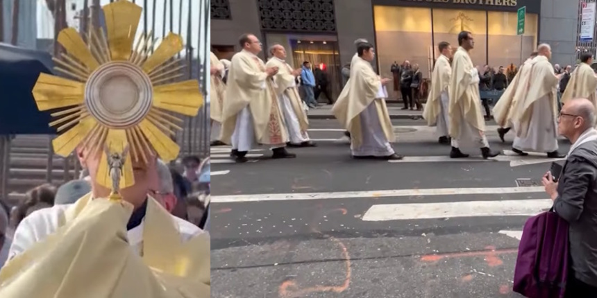 In New York nahmen diese Woche tausende Katholiken an einer eucharistischen Prozession teil. Mitten in der Rush-Hour folgten mehr als 3000 Katholiken einen Aufruf zu der Prozession nach Manhatten Downtown, die vom Napa Institute in Zusammenarbeit mit der Erzdiözese New York organisiert wurde. Das ganze ist Teil der Initiative „National Eucharistic Revival“ der US-Kirche. Die Prozession begann bei der St. Patricks Cathedral an der Fifth Avenue und führe dann bis zum berühmten Times Square. Musikalisch begleitet wurde die Prozession von den Franziskanern der Erneuerung. An der Prozession nahm Kardinal Giorgio Marengo. Die Abschlussmesse wurde mit Kardinal Seán O’Malley gefeiert.