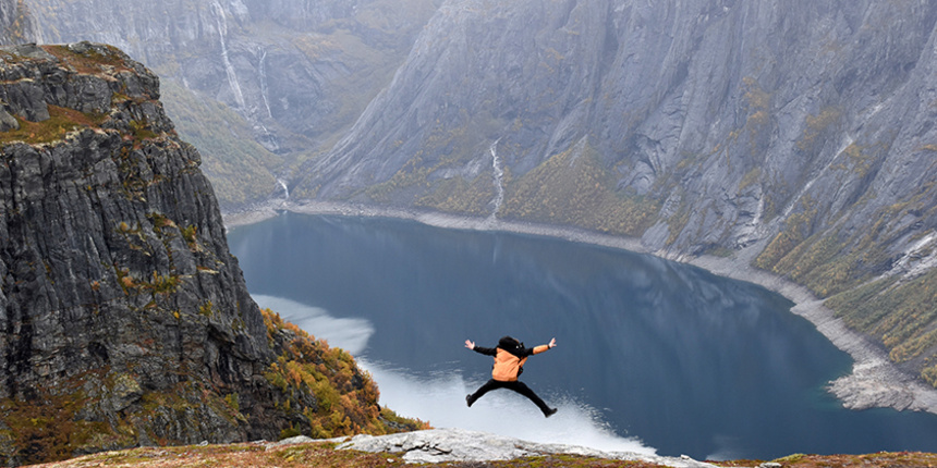 Bild: Atemberaubende Ausblicke auf der Trolltunga-Felsplatte über dem See Ringedalsvatnet in Norwegen © Jonas Kocum