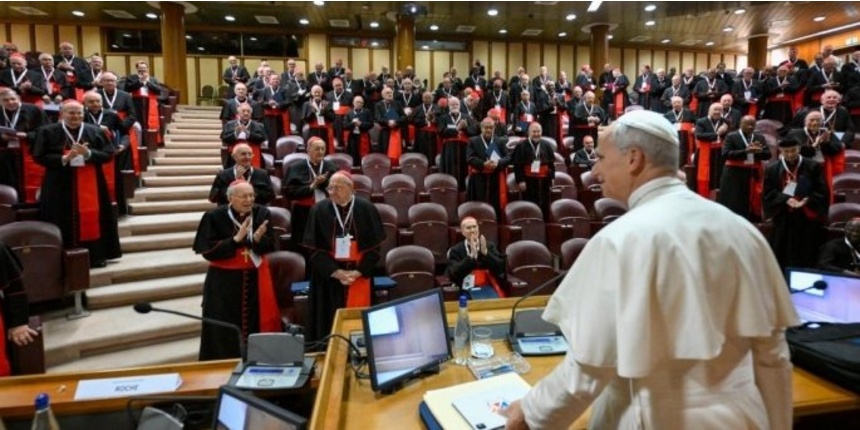 Auf den Verstand, das Herz und den Geist jedes Einzelnen hören; einander zuhören; nur den wichtigsten Punkt und nur sehr kurz zum Ausdruck bringen, damit alle zu Wort kommen können: Das wird unsere Vorgehensweise sein. Die alten römischen Weisen sagten: Non multa, sed multum! Und in Zukunft wird diese Art, einander zuzuhören, indem wir die Führung des Heiligen Geistes suchen und gemeinsam voranschreiten, für den Petrusdienst, der mir anvertraut wurde, weiterhin eine große Hilfe sein. Auch aus der Art und Weise, wie wir lernen, in Brüderlichkeit und aufrichtiger Freundschaft zusammenzuarbeiten, kann etwas Neues entstehen, das Gegenwart und Zukunft in Bewegung setzt.