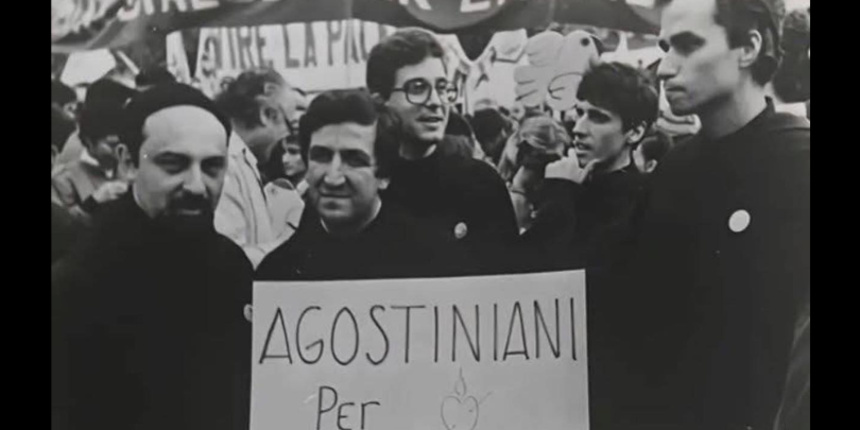 Eine schwarz-weiß Fotographie, die erst kürzlich wieder Aufmerksamkeit erregt hat, zeigt den jungen Augustinerpater Robert Francis Prevost – den heutigen Papst Leo XIV. – inmitten einer großen Friedensdemonstration in der italienischen Hauptstadt Rom. (Er ist auf dem Foto rechts zu sehen.) Das Bild dokumentiert seine Teilnahme an einer der größten pazifistischen Manifestationen der 1980er Jahre in Italien.